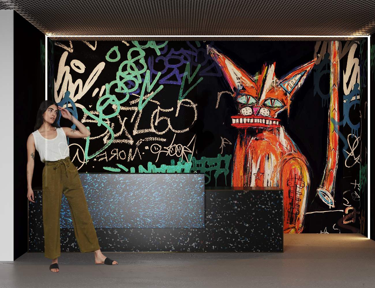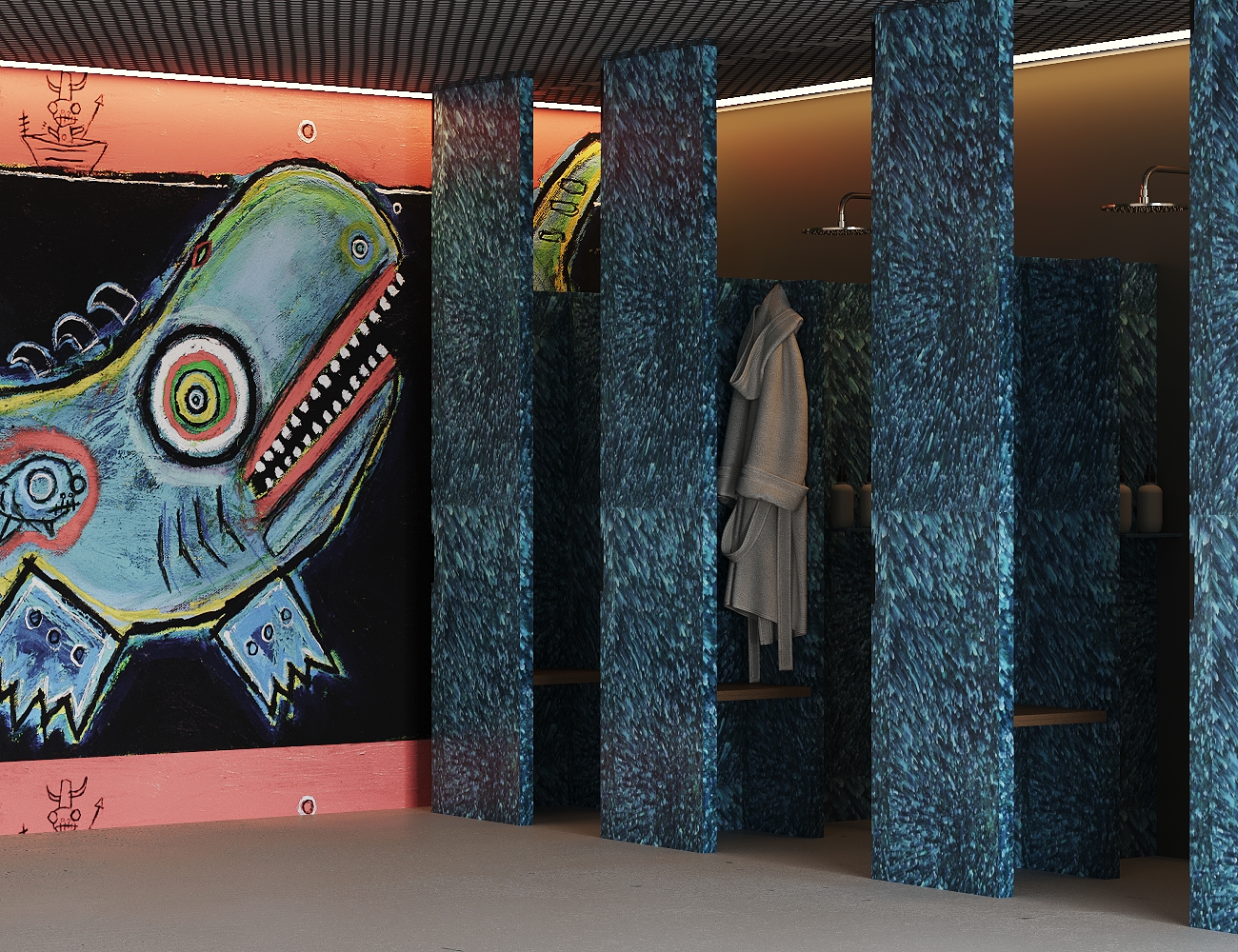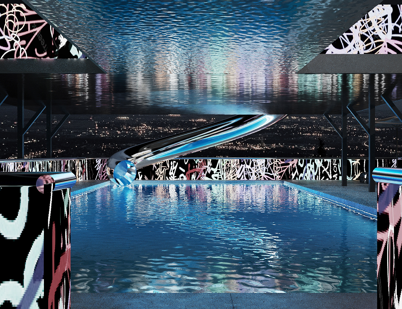 This University project focused on the redesign of the «Bathing Ship» at the urbanized Donau Canal Vienna, reimagining wellness with its unique underground atmosphere. Inspired by a vibrant graffiti culture of the area, street art served as a primary influence in the design concept. Additionally, furniture crafted from recycled plastic caps and bottles added a touch of sustainability and creativity. The top floor featured seats resembling river pebbles, offering visitors a customizable sitting experience. Another standout feature was a mirrored sauna seamlessly blending with its surroundings, along with a mirrored water slide for added amusement, enhancing the overall guest experience.