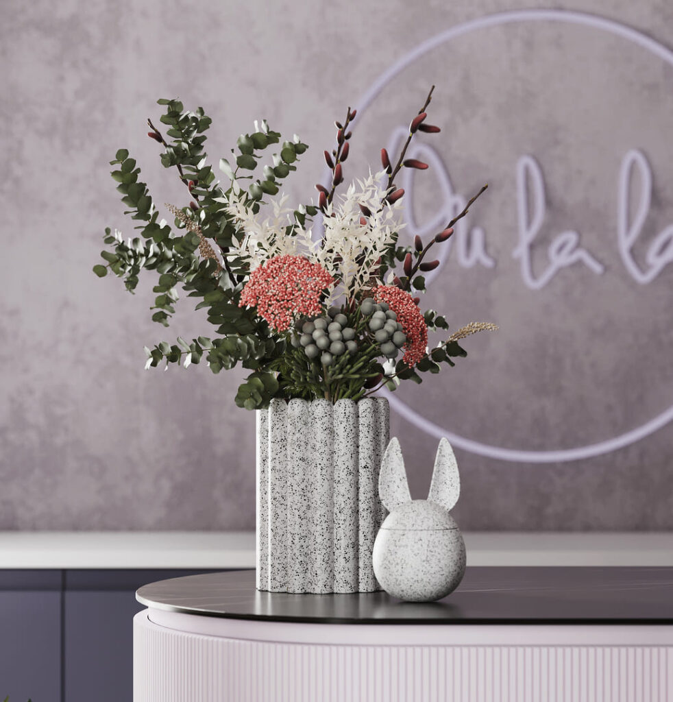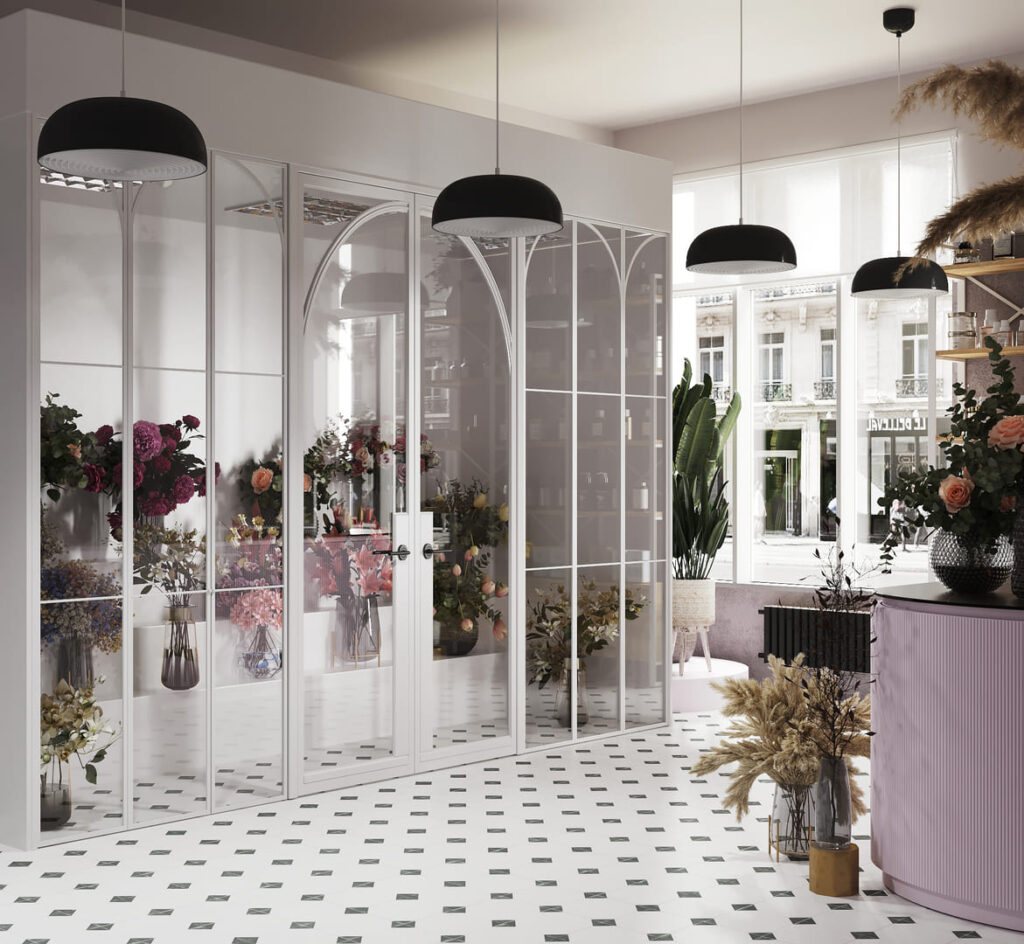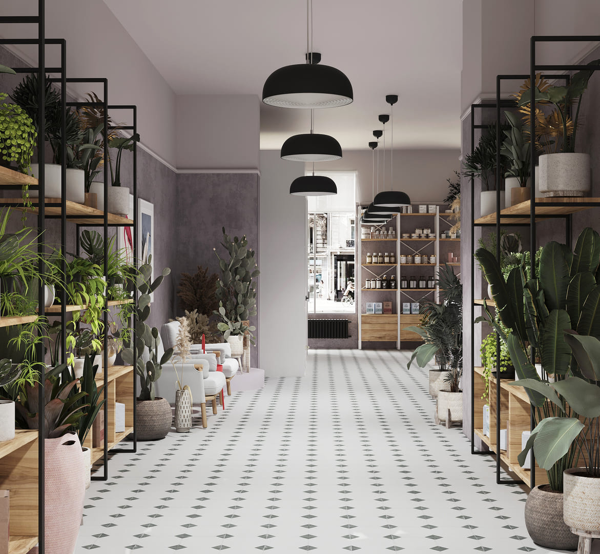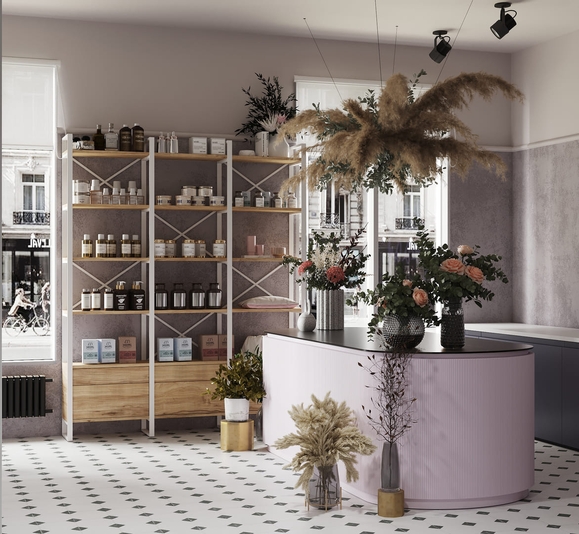 The design concept for the flower boutique centered around maximizing the use of space to effectively display cut flowers and bouquets while accommodating a cozy lounge area for floristry consultations. To optimize profitability, tropical and indoor plants were strategically placed throughout the boutique for sale. Additionally, a fragrance and perfume rack were incorporated into the layout to offer customers an enhanced sensory experience during their visit.